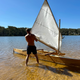 The Avoca Outrigger measures 17 feet long, with the main hull (vaka) weighing around 13kg and a fully rigged weight of about 18 kg—light enough for anyone to handle on and off the water.